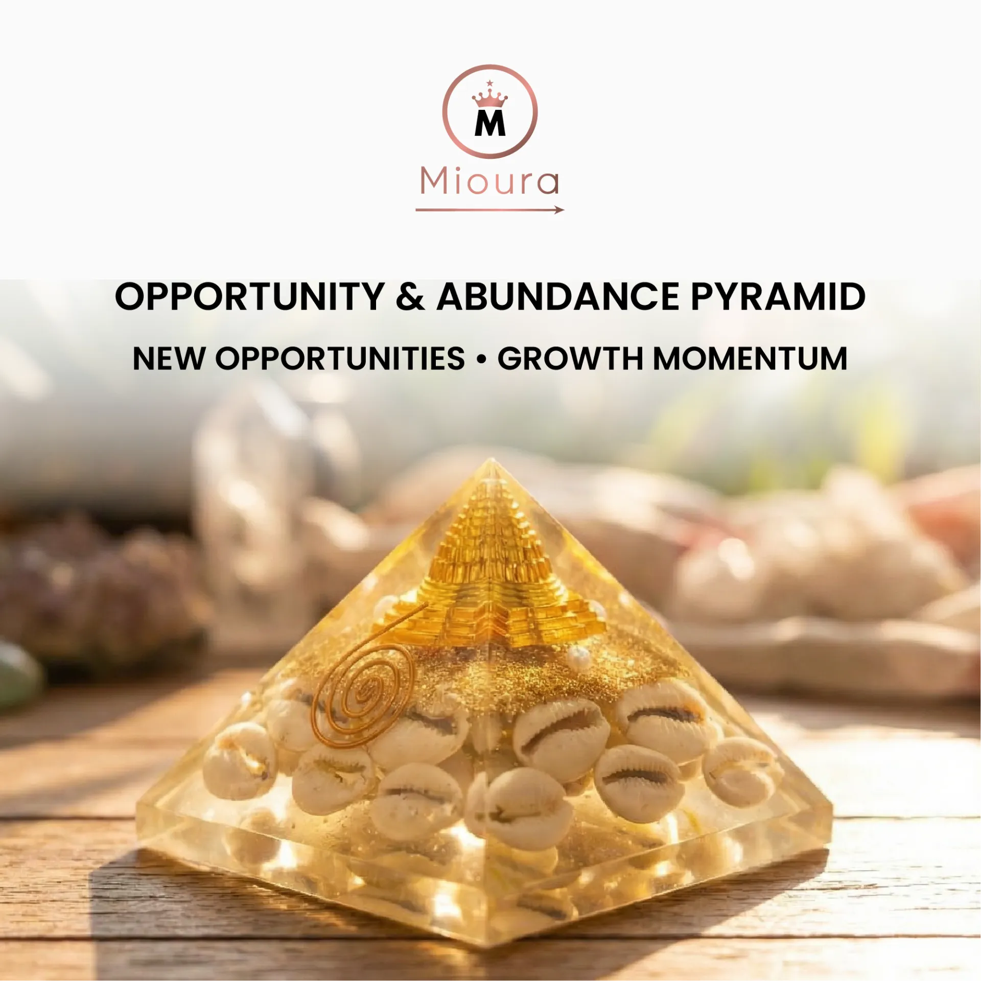Each pyramid is high-vibration energised by Mioura’s Founder, Nidhhi, to amplify its ability to attract career opportunities, business expansion, income growth, and fresh beginnings.